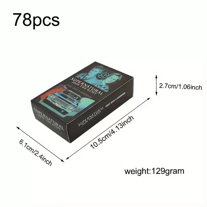 Unleash the supernatural with this unique, illustrated tarot deck inspired by the long-running television series. Featuring all your favorite characters, including Sam, Dean, Bobby, Castiel, and Crowley, this 78-card deck comes with a guidebook for easy readings. Measuring 10.5*6*2.5 cm, it's the perfect gift for fans and tarot lovers alike!