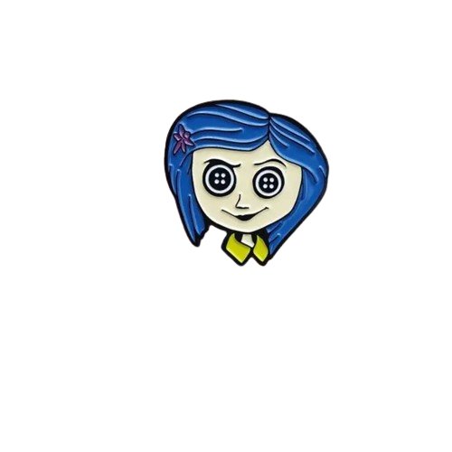 Introducing the Coraline Other Mother's Button Eyes Pin Badge, made from high-quality aluminum alloy. This brooch is brand new, measuring at 2.6cm/1.02in by 2.5cm/0.98in. Add a touch of unique and stylish flair to your outfit with this one-of-a-kind accessory.
