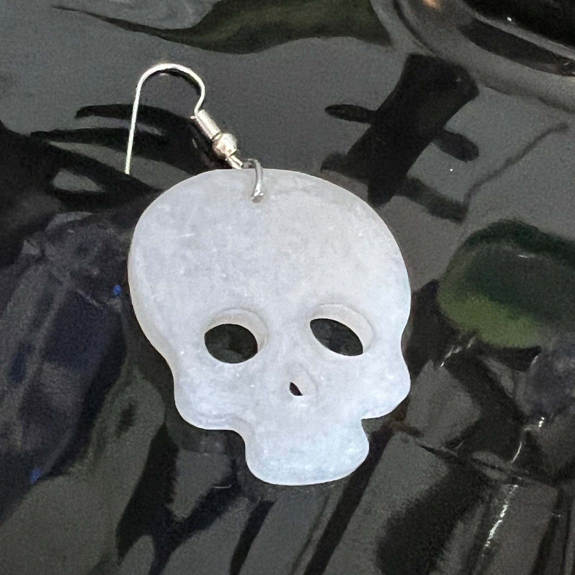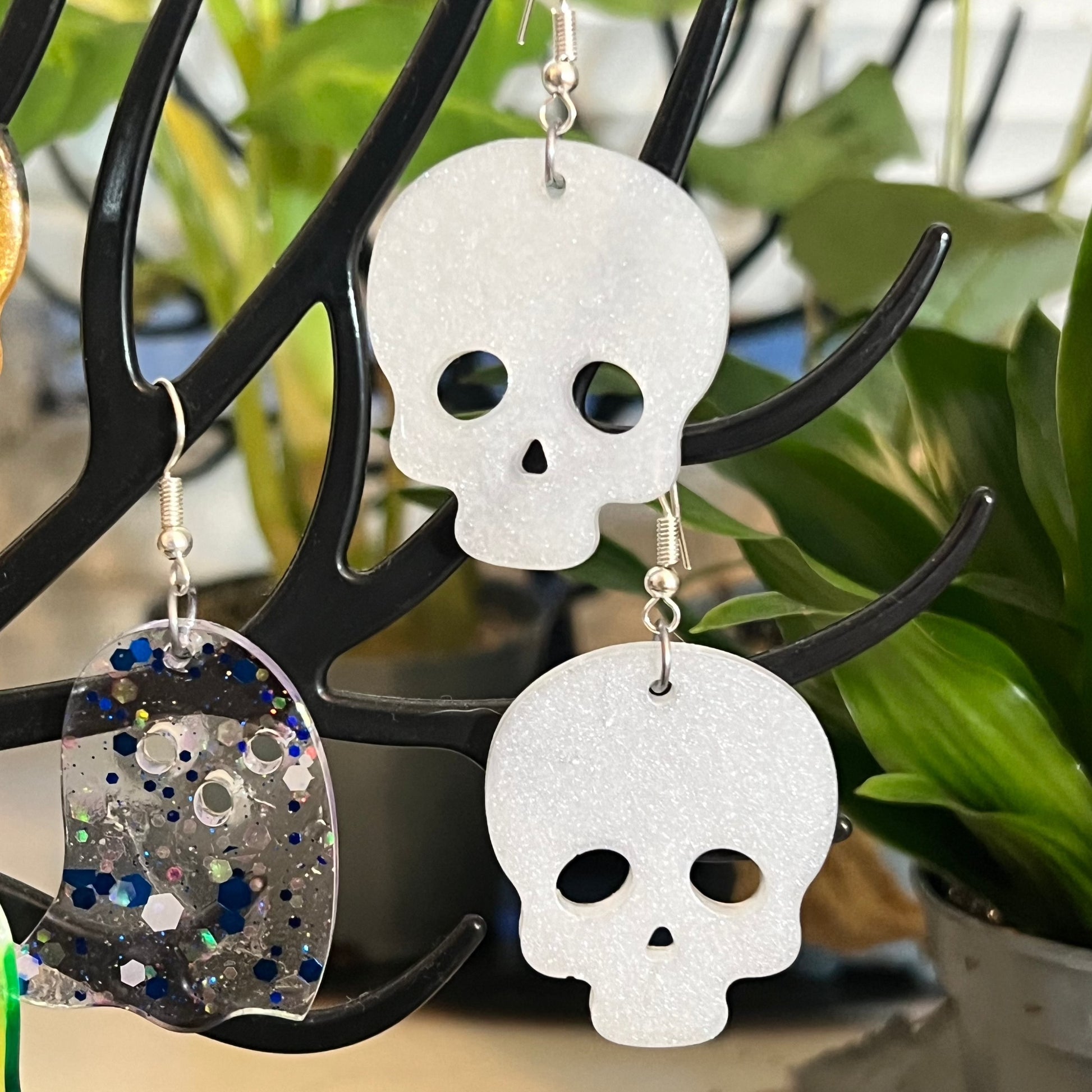 Handmade Pearlised Glitter White Skull Resin Earrings