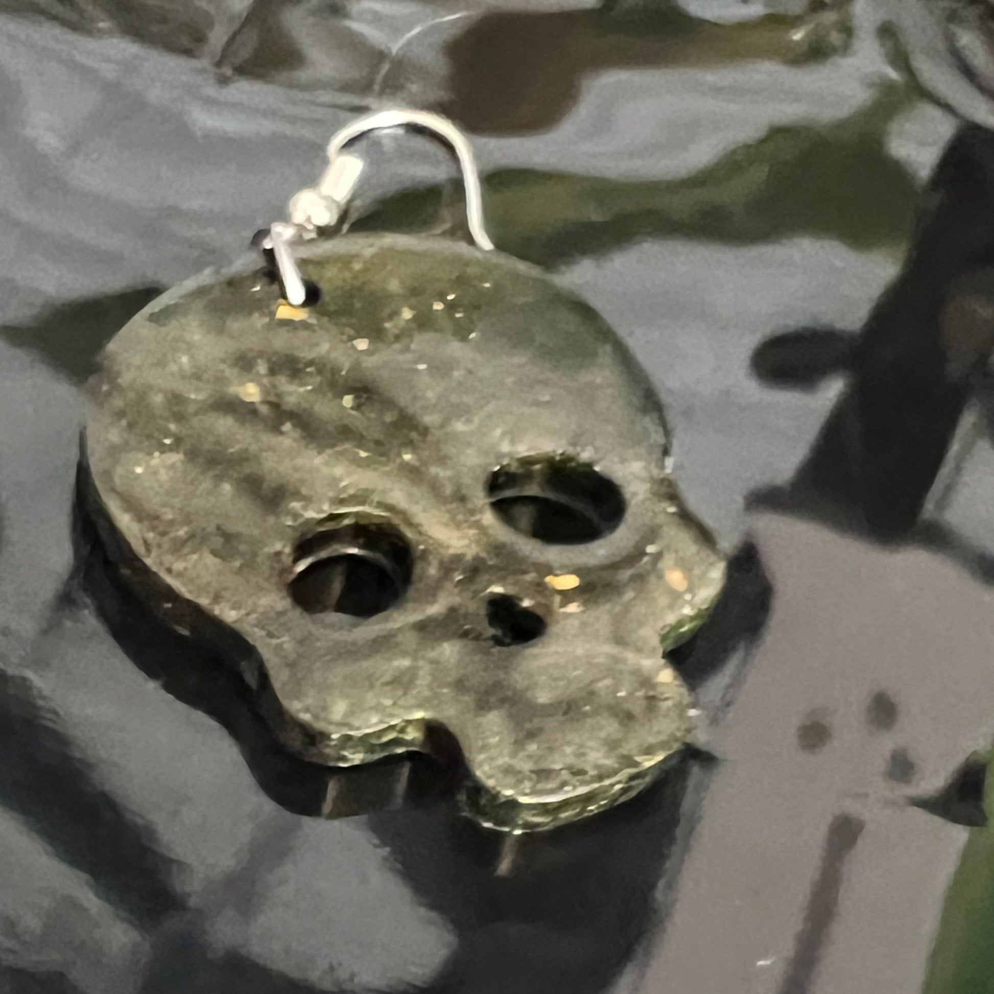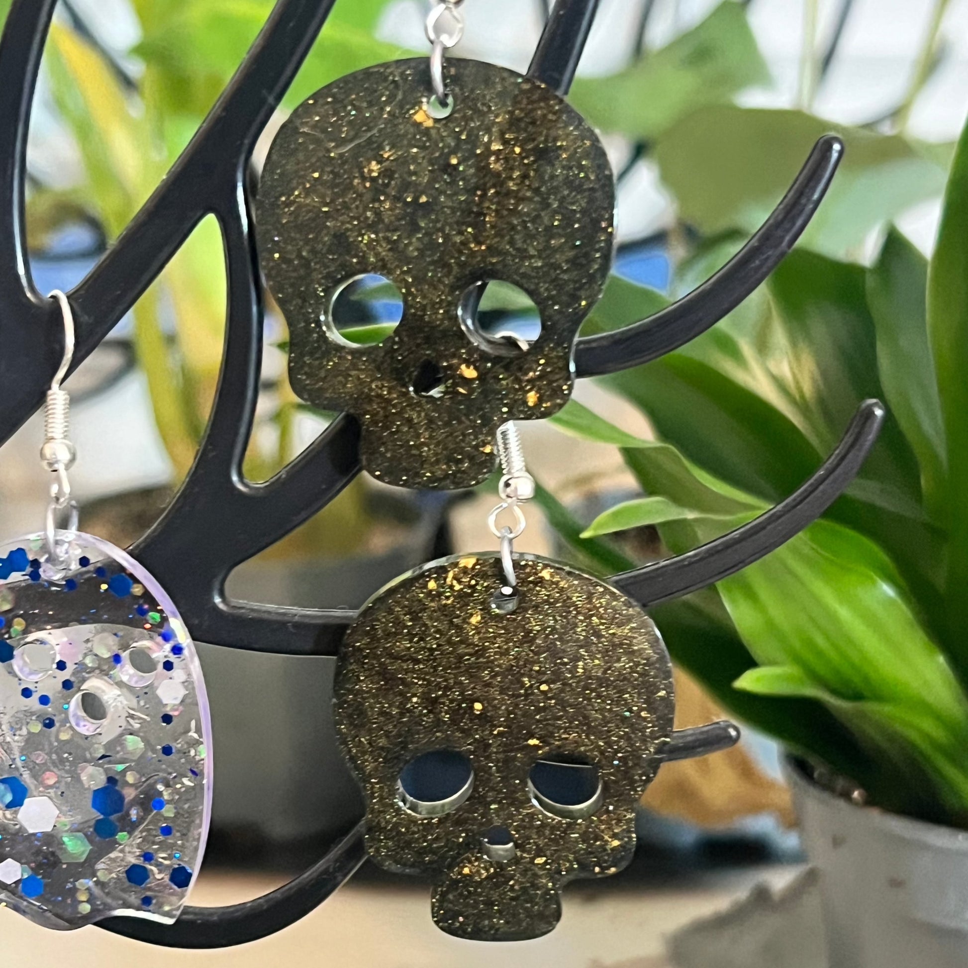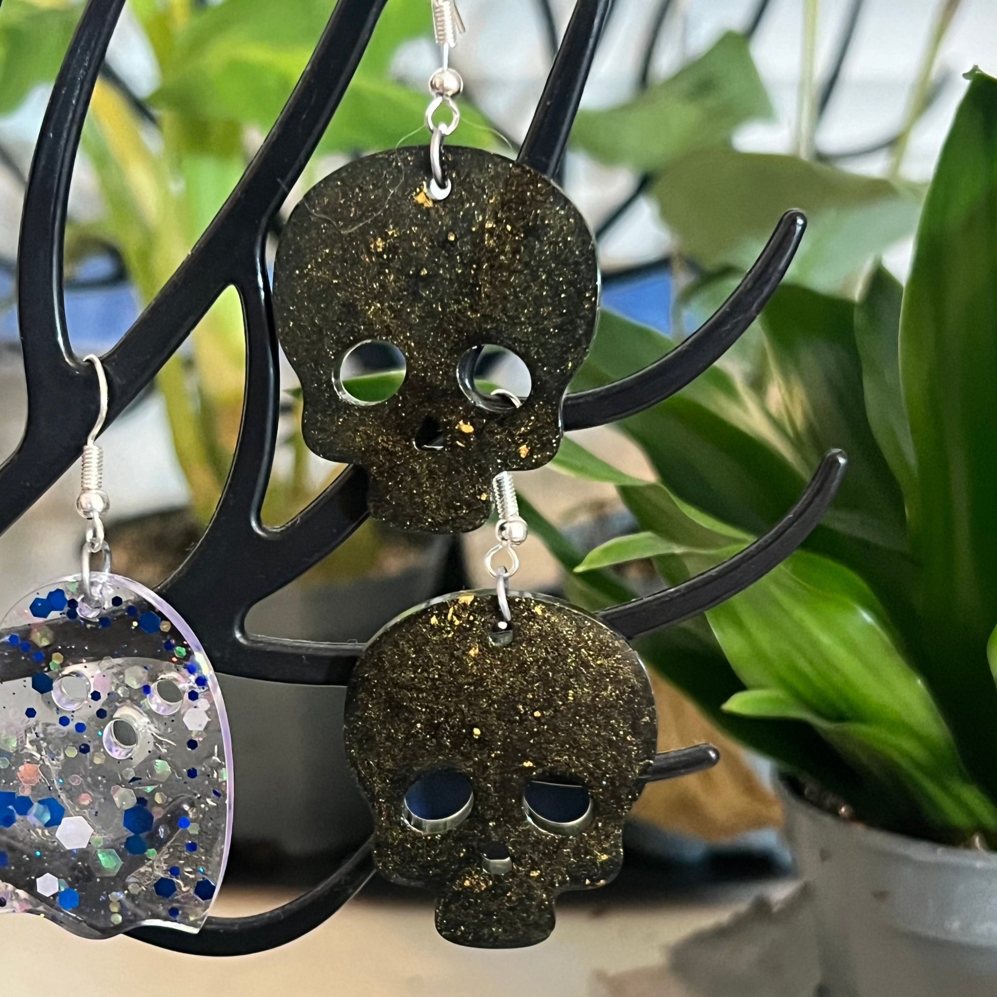 Handmade Gold Glitter Black Skull Resin Earrings