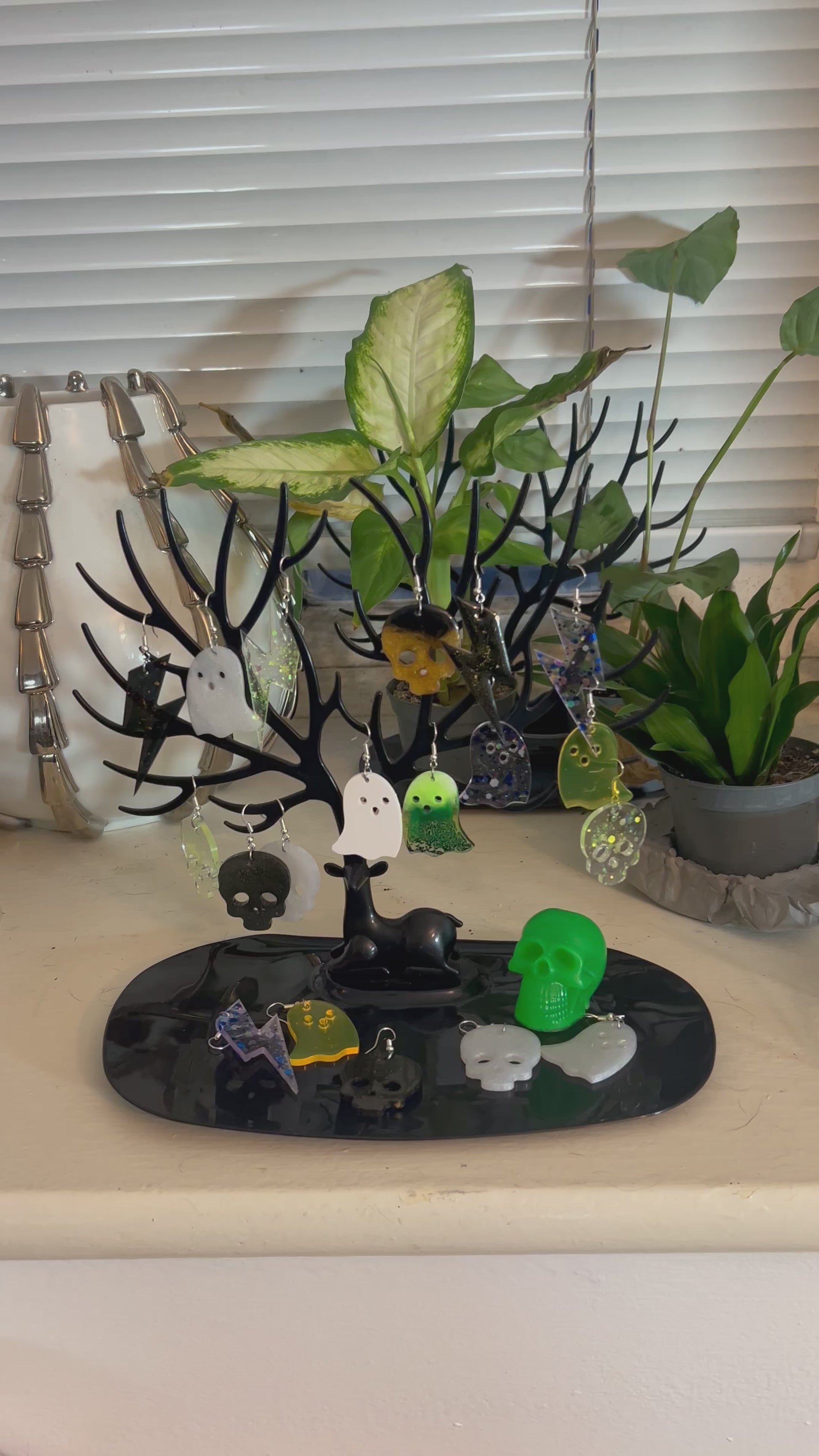 Add a touch of creepily cute to any outfit with our Handmade Gold Glitter Black Skull Resin Earrings. Each earring is lovingly crafted with glittering gold accents, making them perfect for any occasion. Please note that due to the handmade nature of these earrings, slight colour variations may occur.