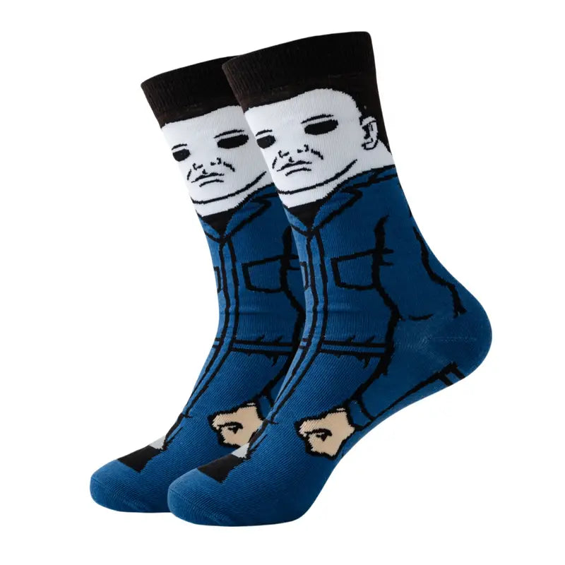 Get ready for some spooky fun with these Michael Myers Halloween Horror Movie Novelty Socks! Whether you're a horror fan or just looking for a trendy pair of socks, these comfy crew socks featuring the iconic killer pattern are perfect for any season. Grab a pair (or five) for some playful and quirky street style.