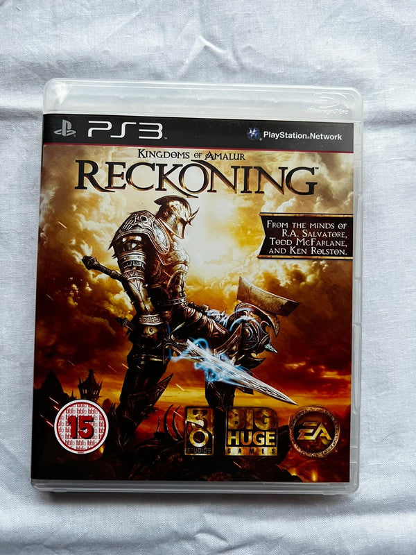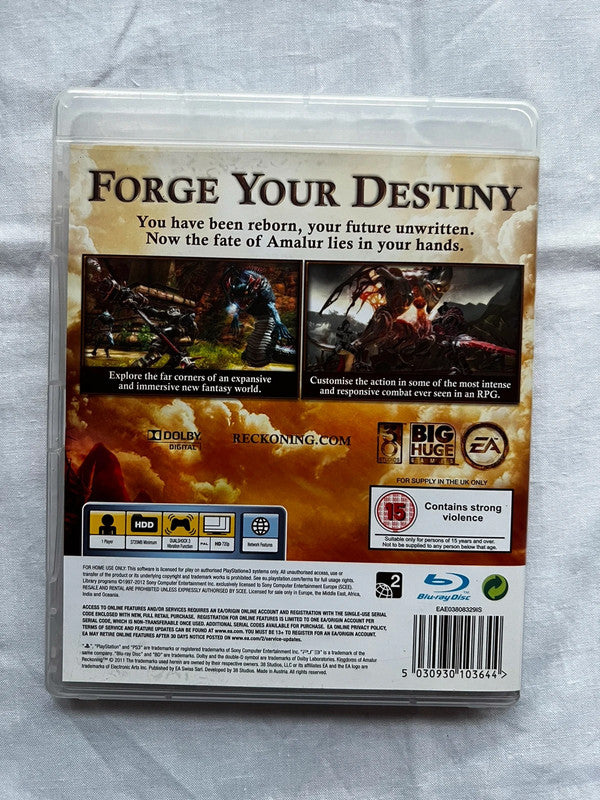 Choose your own path and battle through a sprawling master-crafted world featuring some of the most intense, responsive, and customizable RPG combat ever in Kingdoms of Amalur: Reckoning. This mysterious and magical new fantasy world has been meticulously built from the ground up with the help of three Visionaries: New York Times bestselling author R. A. Salvatore, Spawn creator Todd McFarlane, and Ken Rolston, lead designer of the critically acclaimed RPGs Elder Scrolls III: Morrowind and Elder Scrolls IV: Oblivion. The lore of Kingdoms of Amalur spans 10,000 years of epic fiction, with Reckoning capturing a moment in this history. Asthe first warrior ever to be resurrected from the grips of death, players can turn their lack of a destiny to their advantage and harness fate as a weapon. Every building, tree, and creature has a clear and defined history within this immersive world filled with extraordinary landscapes, mysterious cities, colorful characters, and fantastic creatures. Kingdoms of Amalur: The Reckoning on PS3 Features: Intense Action Combat in an RPG Create your own unique combat style using a dynamic system that delivers some of the most intense and responsive action ever found in an RPG.