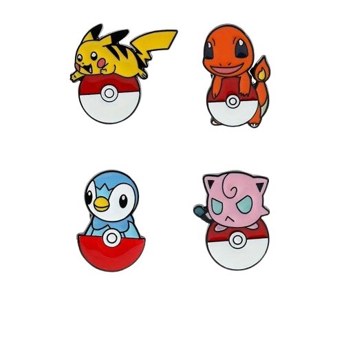 This Pokémon Pin Badge features Pikachu, Piplup, Charmander, and Jigglypuff, making it a must-have for any fan. Each unique character brings its own charm to the design, making it a delightful addition to any collection. Show off your love for the Pokémon franchise with this high-quality pin badge.