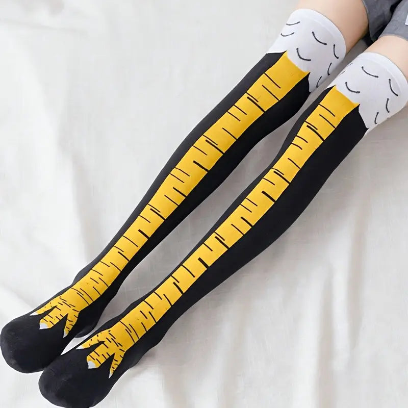 Step up your style game with these clucking awesome knee high socks! Made with real chicken feet (just kidding), these socks provide ultimate comfort and add a unique touch to any outfit. Perfect for both fashionistas and poultry lovers alike.