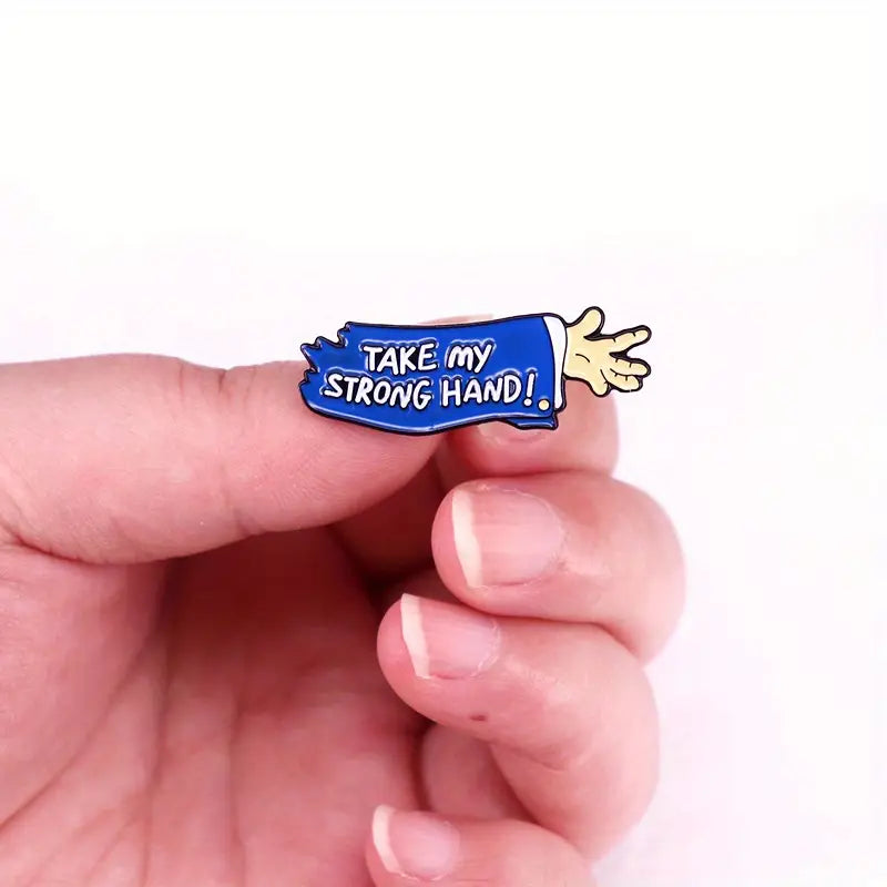 Get a grip with this "Take My Strong Hand!" Scary Movie Pin Badge, featuring the best quote from Scary Movie 2. Perfect for fans of the film or anyone who wants to add a touch of humor to their outfit. Don't let this collectible slip through your fingers!
