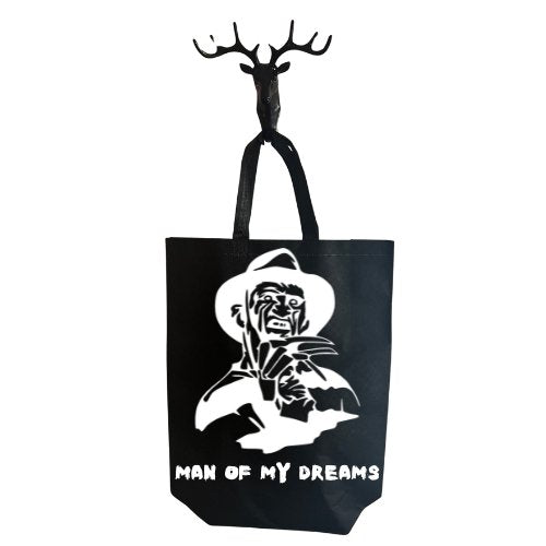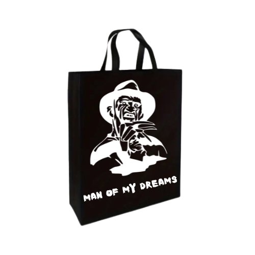 Carry your nightmares in style with our Man Of My Dreams Tote Bag. Featuring the iconic Freddy Krueger, hand-printed in the UK. Perfect for horror fans and those who like to keep things interesting.